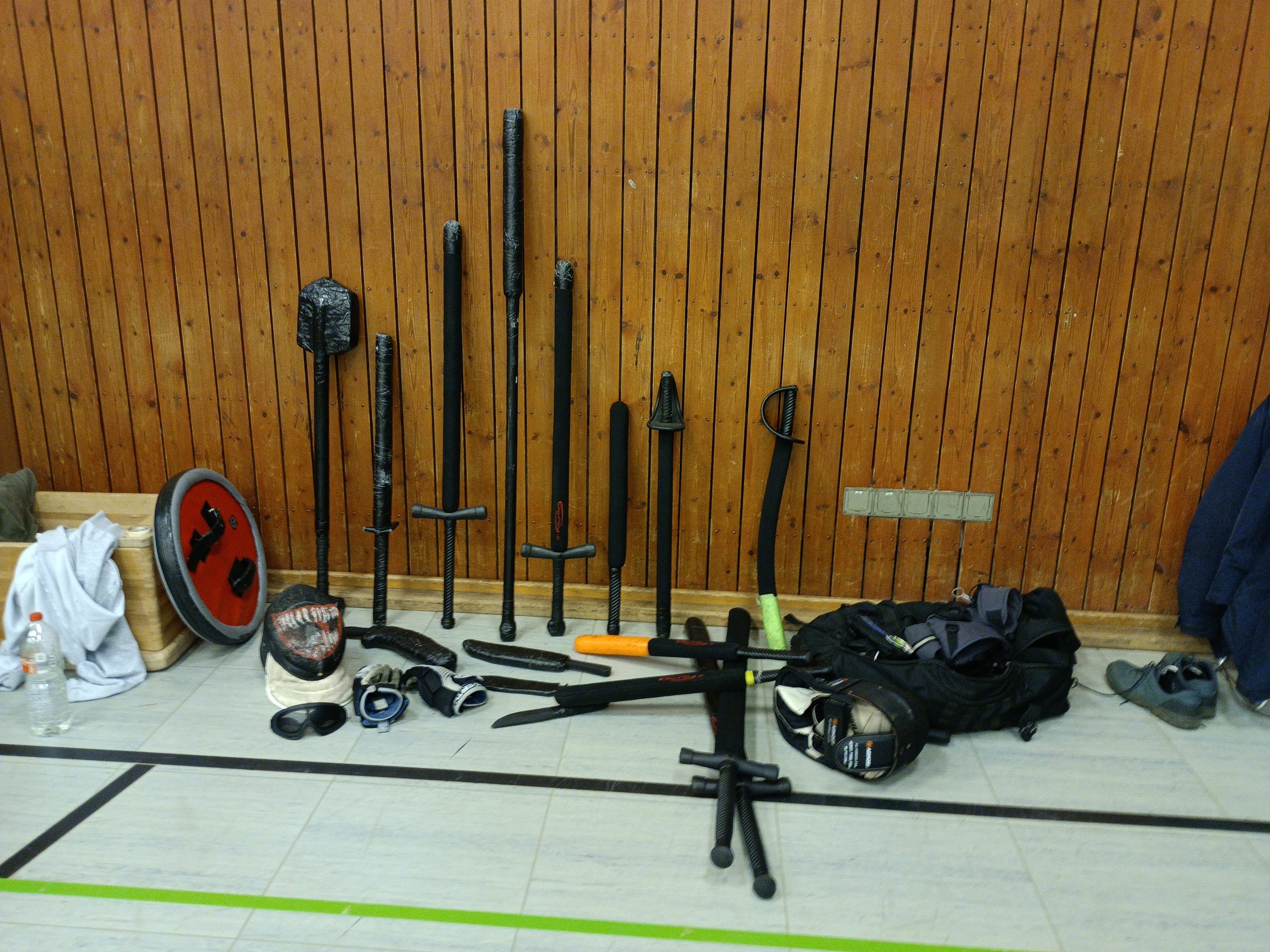 Bei dem, was wir als Machete bezeichnen, handelt es sich um eine grosse einhändig geführte einschneidige Klinge, die sowohl als Werkzeug als auch als Waffe eingesetzt wird. Grundsätzlich handelt es sich um ein Kurzschwert ohne oder mit rudimintärem Handschutz. Ein beispiel dafür ist das philippinische Bolo. Für verletzungsfreies Training verwenden wir gepolsterte Machete-Replica, Schutzbrillen und Handschuhe.